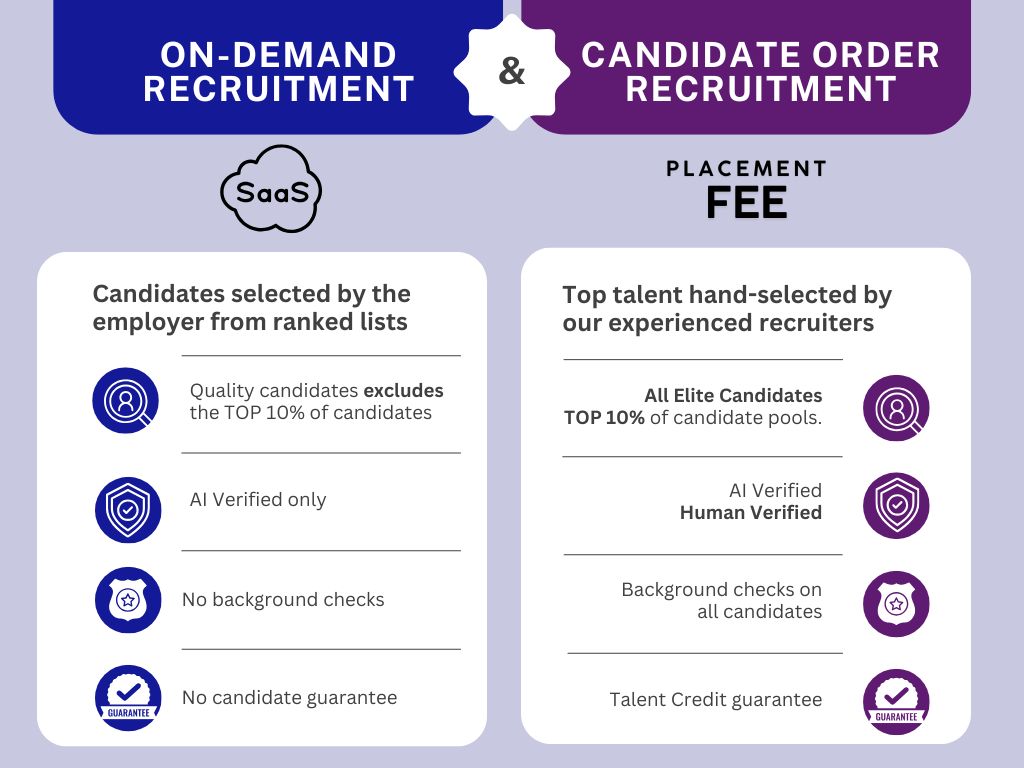 Our experienced recruiters receive the Candidate Order and filter, select and interview matched job seekers to provide a list of the best candidates for the role. There is no cost for this service and the employer only pays a placement fee if they hire one of the candidates.  The features and benefits of the Candidate Order includes: